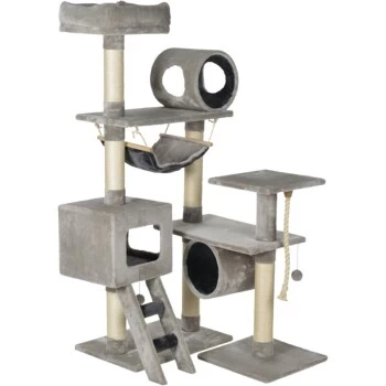 • Ideal für Haushalte mit mehreren Katzen, da es verschiedene Ruhe- und Versteckmöglichkeiten gibt wie Höhlen, Hängematten und Röhren