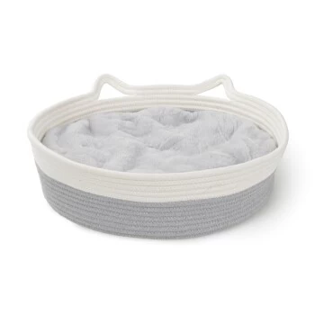 Bietet deinem Haustier einen gemĂŒtlichen Platz zum Schlafen und Entspannen. Leicht, einfach zu transportieren und tragbar fĂŒr unterwegs. Die weiĂen Katzenohren verleihen dem Design einen Hauch von katzenhaftem SpaĂ. NatĂŒrliche cremefarbene und moderne graue Farbkombination. Inklusive superweichem PlĂŒschkissen. GanzjĂ€hrig verwendbar, Kissen waschbar bei 30 Grad Celsius.