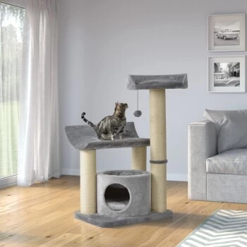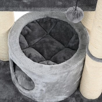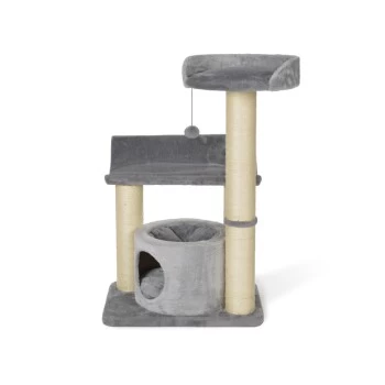 Mit dicken SĂ€ulen sorgt der AniOne Kratzbaum Phoebe fĂŒr optimale Krallenpflege. Der PlĂŒschball, welcher direkt am Kratzbaum befestigt ist garantiert jede Menge SpielspaĂ. FĂŒr Ruhephasen eignet sich sowohl das Innere der Höhle, die durch das herausnehmbare und waschbare Kissen zu einem bequemen Paradies wird als auch die komfortable HĂ€ngematte. Aufgrund der mehreren angebotenen FlĂ€chen kann der Kratzbaum auch in einem Mehrkatzenhaushalt genutzt werden.