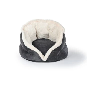 Die AniOne Kuschelhöhle Lou bietet deinem Liebling hohen Liegekomfort. Die Außenseite und eine Kissenseite sind mit einem weichen Kurzhaar-Plüschstoff in Grau überzogen welcher edel und luxuriös wirkt.