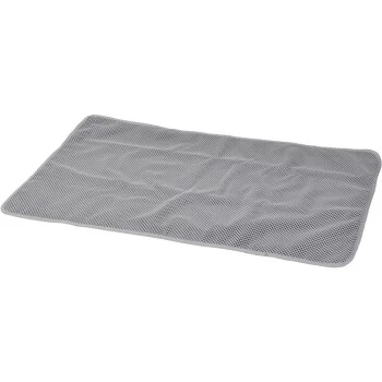 Der Toilettenvorleger ist strapazierfähig und leicht. Er fühlt sich weich an und entfernt die verbleibende Streu samt von den Pfoten. Die Streu bleibt bei Kontakt an dem doppellagigen Vorleger hängen.