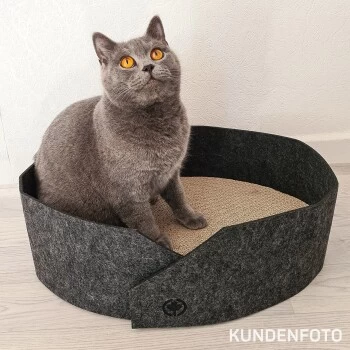 Das Filzbett „Owen“ verbindet modernes Design mit den zwei besonders bei Katzen beliebten Materialien: an schmiegsamer Filz & hochwertige Wellpappe zum schlummern und bekratzen.