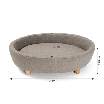 Der Bezug ist in allerfeinster Polsterqualität, das dazugehörige Kissens ist waschbar (Handwäsche) und gefüllt mit weichem Schaumstoff. Die Rückseite besteht aus Lammfellimitat, so lässt es sich schön kuscheln.