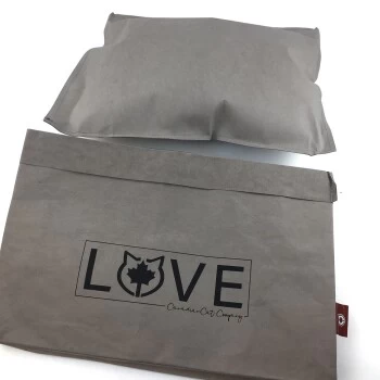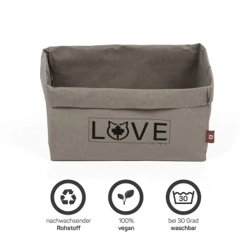 Das langlebige Katzenbett im minimalistischen shabby chic look besteht aus nachhaltigen, natürlichen Zellulose Fasern. Es ist federleicht und wird mit einem herausnehmbaren Kissen geliefert. Durch die flexible, anpassbare Bettkante bietet es kleinen wie großen Samtpfoten einen gemütlichen Platz zum schlafen und kuscheln. Das Bett wird aus dem nachwachsenden Rohstoff Papier hergestellt und ist dadurch vegan, sowie komplett biologisch abbaubar. Für die Katzen ist das außergewöhnliche Bett äußerst warm und gemütlich. Es kann mit milden Reinigungsmitteln abgewaschen werden, ist schnelltrocknend, und behält dabei seine Form. Das Bett ist faltbar und eignet sich perfekt für reisefreudige Katzen. Die Zeit der überall im Haus verstreuten Papiertüten und Pappkartons ist nun Vergangenheit.