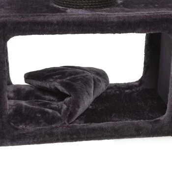 Eine geräumige Höhle mit herausnehmbarem Kissen am Fuße des Kratzbaums, bietet einen idealen Ruheplatz und sorgt zudem für absolute Stabilität des gesamten Aufbaus. Der mit Qualitäts-Sisal umwickelte Stamm des Kratzbaums ist extrem massiv und stark genug, um dem intensiven Kratzen Ihres Stubentigers standzuhalten und eine ausgezeichnete Krallenpflege und Beschäftigung zu gewährleisten. Die Sisalsäule hat dabei einen Durchmesser von ca. Ø 20 cm.