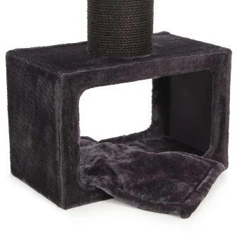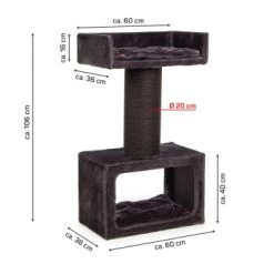 Bei einer Höhe von ca. 106 cm befindet sich das Kuschelbett auf einer angenehmen Position, um mit den Stubentigern sowohl im Sitzen als auch im Stehen zu interagieren. Der Kratzbaum kann praktisch auch neben dem Sofa platziert werden, sodass Ihr Liebling auf Augenhöhe mit Ihnen gemütlich verweilen kann. Auf der Liegefläche, welches ein Maß von ca. 60 x 36 x 16 cm aufweist, befindet sich zudem ein komfortables Kissen. Der Kratzbaum eignet sich demnach prima zum Spielen, verstecken und auch zum kuscheln und schlafen.