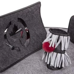 Damit der Teppich sicher an seinem Platz bleibt, ist er auf der Unterseite mit Anti-Rutsch Noppen versehen. Zusätzlich ist er mit Knisterfolie ausgestattet, um den Spieltrieb Deiner Katze weiter zu fördern. Der Teppich ist aus robusten Filz-Material gefertigt und somit langlebig und pflegeleicht.