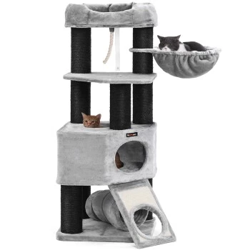 - – Auch für Kätzchen und ältere Katzen geeignet: Sowohl das mehrstufige Design als auch die Rampe erleichtern das Hoch- und Herunterklettern.