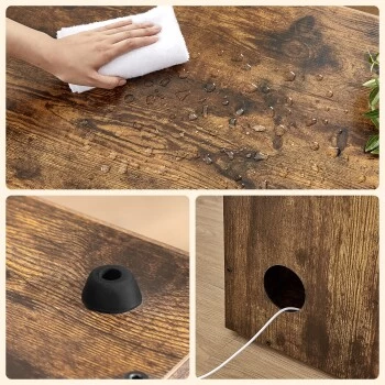 Eine gute Option: Die furnierte Spanplatte bietet eine robuste Struktur und ist leicht zu reinigen; die rustikale Oberfläche und die Lamellentüren bringen einen attraktiven Charme – praktisch und stilvoll