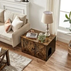 [Stilvolles Katzenklo] Mit seinem rustikalen Stil und den schicken Scheunentüren fügt sich dieses Katzenklo problemlos in die meisten Wohnstile ein und verwandelt das stille Örtchen Ihrer Katze in einen echten Blickfänger [Mehr Privatsphäre, weniger Geruch] Dank der geschlossenen Konstruktion bietet diese Katzentoilette einen privaten Ort, an dem sich Ihre Katze sicher fühlt, um ihre Notdurft zu verrichten und es entsteht weniger Schmutz – eine Win-Win-Lösung! [Geräumiger Innenraum] Mit einer Größe von 50 x 50 x 46 cm bietet das Hauptfach dieses Katzenschranks genug Platz für die meisten Katzentoiletten. Sie können auch die Trennwand entfernen, um die Fläche auf 74,9 x 50 x 46 cm zu vergrößern [Für Ihre Katze und Sie] Stellen Sie ein Katzenklo hinein, verwenden Sie es als Beistelltisch oder stellen Sie ein Katzenbett hinein, um einen gemütlichen Unterschlupf zu schaffen [Kinderleichte Montage] Ihre Katze kann es kaum erwarten, ihr neues Möbelstück auszuprobieren? Kein Problem, denn mit einer Schritt-für-Schritt-Anleitung und beschrifteten Teilen ist dieses Katzenhaus in 20 Minuten fertigFeandrea Hinweise: