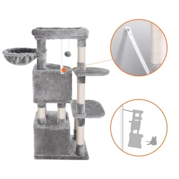 Verwöhnen Sie Ihre Katze mit diesem Kratzbaum, damit Sie sich nicht allein fühlen, auch wenn Sie außer Haus sind, sondern spielen und relaxen können
