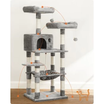Klettergarten für Jung und Alt: Die einzelnen Elemente des Katzenkratzbaums sind derart angeordnet, dass selbst kleine Kätzchen oder Katzensenioren spielend hinaufklettern können