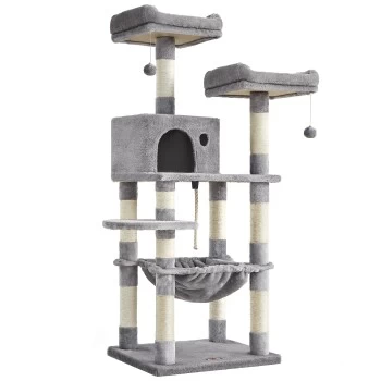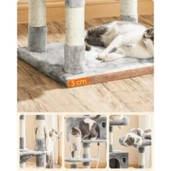 Materialien zum Schnurren: Dicker Plüsch, kratzfester Sisal, robuste Holzspanplatte – Die Materialien dieses Katzenbaumes überzeugen selbst die Stubentiger