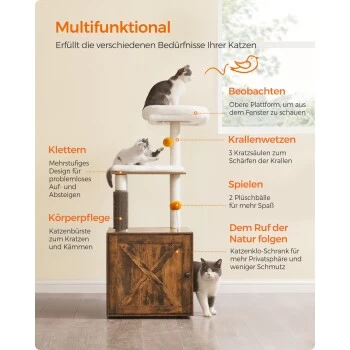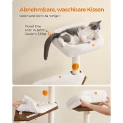 – Da Katzen gerne springen und spielen, befestigen Sie den Kratzbaum bitte mit dem mitgelieferten Kippschutz an der Wand, die notwendige Stabilität zu gewährleisten.