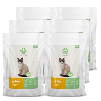 Verloren im Futterdschungel? Welches Futter ist wirklich mit hauseigenem Sachverstand und Expertise entwickelt? Bei Fellicita können Sie sicher sein, dass die Rezepturen für Katzen und Hunde aus tierärztlicher Feder nicht nur einmalig nach FEDIAF-Standards konzipiert wurden, sondern auch laufend gemäß aktuellen wissenschaftlichen Erkenntnissen überprüft werden. Das Sortiment umfasst Mono- und Multiprotein-Nassfutter mit kurzer Zutatenliste und transparenten Rezepturkonzepten; hergestellt in Deutschland. Die besonders leckere, weiche und feine Pastete überzeugt auch Gourmet-Katzen. Tierfreunde vertrauen Fellicita, denn: gesundes Futter – glückliches Leben!
