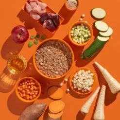 In unser Super-Premium Nassfutter kommen nur allerbeste Zutaten in Lebensmittelqualität. Hochwertiges Muskelfleisch, frisches Obst und GemĂĽse, wertvolle Ă–le und unser eigens entwickelter Vitamin- und Mineralstoffmix. Keine Geschmacksverstärker, keine Farbstoffe, keine Konservierungsstoffe, keine Schlachtabfälle oder Fleischmehle. Aus diesem Grund riecht es auch so gut – eben wie selbst gekocht!