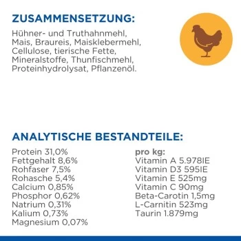 Enthält wenig Fett und wenig Kalorien: mit 18% weniger Kalorien im Vergleich zu HILL’S SCIENCE PLAN Mature Adult Katzenfutter