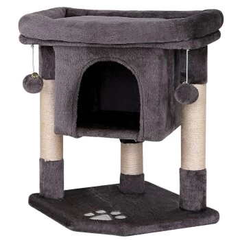 Mit diesem Katzenspielhaus aus weichem Plüsch bleiben keine Wünsche Ihrer Samtpfote offen. Die kuschelige Höhle lädt zum Ausruhen und Verstecken ein und die beiden hängenden Plüschbälle sorgen für den nötigen Spielspaß. Das einladende Liegebett ist ideal für die Ruhezeiten und das Beobachten der Umgebung. Die Stämme aus robustem Sisal unterstützen die Krallenpflege und halten Ihre Katze somit von den Möbeln fern.