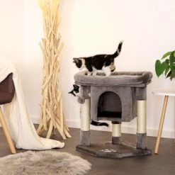 - MAßE UND FARBEN. Dieses hochwertige Katzenzubehör verfügt über die Maße 40 x 40 x 60 cm, die Höhle über 30 x 30 x 20 cm und das Plateau 50 x 32 cm. Das langlebige Katzenspielzeug ist in den Farben Hellgrau und Dunkelgrau erhältlich.
