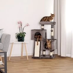 - MAßE UND FARBEN. Dieses hochwertige Katzenzubehör verfügt über die Maße 55 x 40 x 90 cm, die Höhlen über 35 x 35 x 25 cm und das Plateau 35 x 35 cm. Das langlebige Katzenspielzeug ist in den Farben Hellgrau und Dunkelgrau erhältlich.
