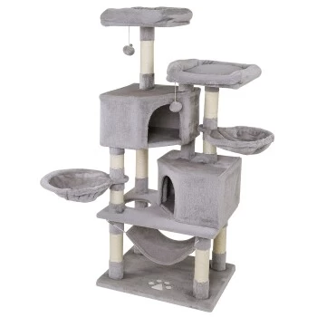 Mit diesem lionto Katzenspielhaus aus weichem Plüsch bleiben keine Wünsche Ihrer Samtpfote offen. Die kuscheligen Höhlen und die Hängematte laden zum Ausruhen und Verstecken ein und die hängenden Plüschbälle sorgen für den nötigen Spielspaß. Die einladenden Liegebetten und die Liegemulden sind ideal für die Ruhezeiten und das Beobachten der Umgebung. Die Stämme aus robustem Sisal unterstützen die Krallenpflege und halten Ihre Katze somit von den Möbeln fern. Sie können diese beachtliche Kratzsäule überall aufstellen und für einen echten Blickfang sorgen. Die Aufbauanleitung ist leicht verständlich und wird zusammen mit dem dementsprechenden Schraubenset mitgeliefert.