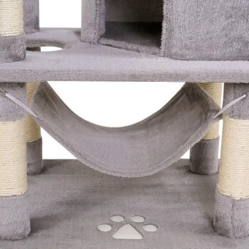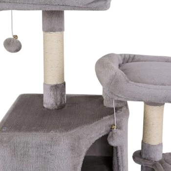 - IDEALES SPIEL- UND RUHEPARADIES. Die vortreffliche Ausstattung dieses Katzenbaumes mit 2 Höhlen und Plüschbällen mit Glocken befriedigt den Spieltrieb Ihrer Katze. Die gemütlichen Liegebetten, die Liegemulden und die bequeme Hängematte unterstützen zusätzlich die benötigten Ruhephasen und auch das beliebte Beobachten kommt nicht zu kurz. Die perfekte Balance zwischen Spielspaß und Rückzugsmöglichkeiten.