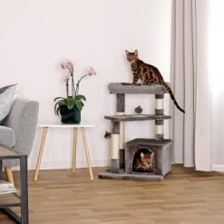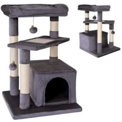- MAßE UND FARBEN. Dieses hochwertige Katzenzubehör verfügt über die Maße 50 x 50 x 75 cm, die Höhle über 40 x 30 x 25 cm und das Plateau 45 x 30 cm. Das langlebige Katzenspielzeug ist in den Farben Hellgrau und Dunkelgrau erhältlich.