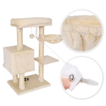 - IDEALES SPIEL- UND RUHEPARADIES: Die vortreffliche Ausstattung dieses Katzenbaumes mit einer Höhle und einem beweglichen Plüschball befriedigt den Spieltrieb Ihrer Katze. Das gemütliche Liegebett und die Liegemulde unterstützen die Ruhephasen und auch das beliebte Beobachten kommt nicht zu kurz