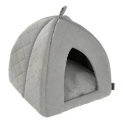Die graue Kuschelhöhle begeistert durch dein schlichtes, elegantes Design welches sich optimal in verschiedenste Einrichtungsstile einfügt. Der Außenbezug und eine Kissenseite besitzen eine in Diamantform gesteppte, weiche Velouroptik.