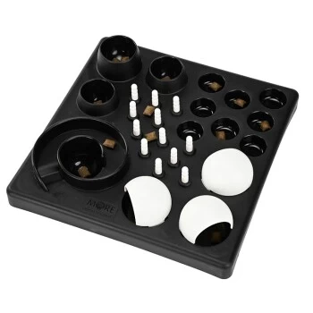 Das Spielzeug Genius für Katzen ist eine tolle Unterhaltung für dich und deine Samtpfote. Verstecke Leckerlies, die deine Katze anschließend unter und zwischen den Bahnen, Löchern, Stiften und Kappen hervor angeln soll. Das Board besteht aus fünf unterschiedlichen spannenden Modulen. Das Spielzeug spricht die natürlichen Bedürfnisse der Katze an und sorgt für eine körperliche und geistige Beschäftigung durch Riechen, Tasten und Sehen. Zur Reinigung kannst du das IQ-Spielzeug problemlos in die Spülmaschine geben.