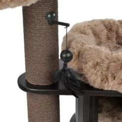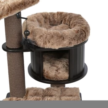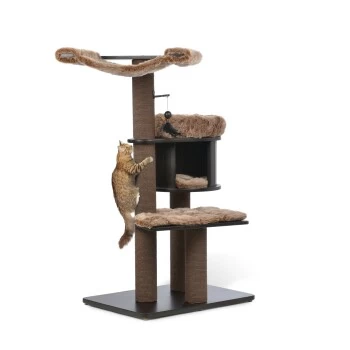 Der MORE Kratzbaum George eignet sich dank seiner groĂzĂŒgigen LiegeflĂ€chen ideal als Ruheoase und Spielwiese fĂŒr groĂe Katzen. Die weichen Liegekissen sind aus kuschelweichem und luxuriösem PlĂŒsch gefertigt und lassen sich bei Bedarf leicht abnehmen und per Hand waschen. Die ca. 12cm breiten KratzstĂ€mme sind mit robustem dunkelbraunem Seil umwickelt, was dem Kratzbaum seine edle Optik verleiht. DarĂŒber hinaus bietet der MORE Kratzbaum George eine bequeme HĂ€ngematte sowie groĂzĂŒgige Höhle, sodass beim tĂ€glichen Beobachten und Entspannen sicherlich keine Langeweile aufkommt. Die Bodenplatte des Kratzbaums ist mit kleinen GummifĂŒĂen ausgestattet und schĂŒtzt so den Boden. Die eleganten dunkelbraunen Farbtöne und die qualitativ hochwertige Verarbeitung machen diesen Kratzbaum zu einem langfristigen LieblingsstĂŒck von dir und deinem Stubentiger – dank der vielfĂ€ltigen Möglichkeiten zum Spielen, Kratzen, Entspannen und Beobachten.