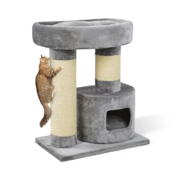 Der MORE Kratzbaum Laurin springt schon aufgrund seiner kompakten Bauweise direkt ins Auge: edles dunkelgraues Plüsch sowie das hochwertige helle Sisal sorgen für eine moderne und zeitlose Optik. Funktional sticht der Kratzbaum vor allem durch seine extra breiten Kratzstämme mit einem Durchmesser von ca. 20cm hervor, die besonders den Kratzinstinkt großer Katzen fordern und angemessen stillen werden. Die besonders großzügigen Liegeflächen bieten ausreichend Platz zum Liegen, Entspannen, Schlafen und Beobachten – selbst für große Stubentiger. Die kuschelweichen Plüschkissen lassen sich bei Bedarf auch ganz einfach abnehmen und bei 30° waschen, sodass lange Kuschelfreude garantiert ist. So sorgt der MORE Kratzbaum Laurin für langfristige Freude beim täglichen Kratzen, Entspannen und Spielen.