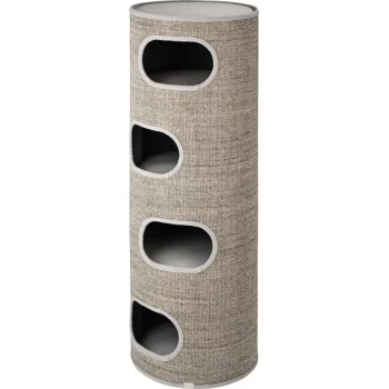 Modernes Design fĂŒr eine perfekte Integration in dein Zuhause. GroĂe und bequeme gepolsterte LiegeflĂ€chen. Die Kratztonne ist rundherum mit einem Sisalteppich versehen, der eine besonders groĂe KratzflĂ€che bietet. Mit 4 Höhlen und einem Durchgang zwischen Ebene 2 und 3. Geeignet fĂŒr kleine bis groĂe Katzen, sowie Haushalte mit mehreren Katzen. Keine Montage erforderlich. Kissen waschbar bei 30°C.