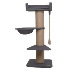 Der Kratzbaum Sara von Petliving lädt zum Klettern, Krallenwetzen, Spielen und Entspannen ein. Der Kratzbaum besteht aus drei Liegeflächen sowie einer Liegemulde, welche mit hochwertigem und robustem Material aus der Möbelindustrie bezogen sind. Der Stoff besteht aus 100 % Baumwolle und ist zugleich wasserabweisend. Die verwendeten Stoffe sind schadstoffgeprüft nach Öko-Tex 100 Standard. Von der oberen Liegefläche kann alles genau beobachtet werden. Das Kissen ist herausnehmbar und der abnehmbare Bezug bei 30° C in der Maschine waschbar. Der XXL-Kratzstamm besteht aus Holz(teile) -reste aus der Möbelindustrie und ist dadurch besonders stabil und robust. Mit natürlichem Sisal umwickelt lädt er zum Krallenwetzen und zur Krallenpflege ein. Das Kissen auf der oberen Plattform ist besonders gemütlich und für den wohl verdienten Komfort gut gepolstert. Die Liegemulde lädt zum Entspannen ein, während das dicke Seil den Spieltrieb weckt.