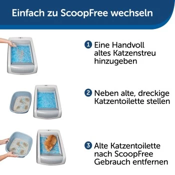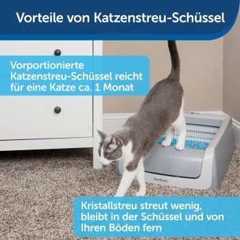 Streichen Sie das tägliche Reinigen der Katzentoilette von Ihrer To-do-Liste. Mit der Selbstreinigende Katzentoilette ScoopFree® mit Haube haben Sie wochenlang eine saubere und gepflegte Katzentoilette. Die spezielle Silikat-Katzenstreu bindet Gerüche bis zu fünfmal besser als herkömmliche, klumpende Katzenstreu, da sie den Urin sofort absorbiert und Kot schnell trocknet. Auch Ihre Böden bleiben sauberer, da die Katzenstreu zu 99 % staubfrei ist und nicht an den Pfoten haften bleibt. Sicherheitssensoren sorgen dafür, dass der Rechenzyklus nur ausgeführt wird, während sich keine Katze auf der Toilette befindet. Die Einwegschalen haben eine Kunststoffauskleidung als Auslaufschutz sowie einen Deckel zur schnellen und einfachen Entsorgung. Die gebrauchte Schale lässt sich bequem durch eine neue austauschen. Ein Gesundheitsmonitor zählt die Besuche der Katzentoilette. Dadurch lassen sich gesundheitliche Probleme gegebenenfalls frühzeitig erkennen. Die mitgelieferte Haube bietet Ihrer Katze einen angenehmen Sichtschutz. Mit der Marke PetSafe® können Sie und Ihr Haustier zusammen glücklich leben™.