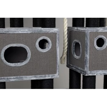 Dieser Kratzbaum bietet viele Kratz-Optionen, um die Sisalstamme oder die mit Sisal bedeckten Spielhäuser zu erklimmen.