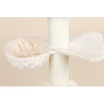 Ganz oben ist einen Liegeplatz mit herausnehmbares waschbares Kissen befestigt mit Klettverschluss. Die drehbare Liegemulde ist eine Kombination aus einer HĂ€ngematte und einem Kissen. Der Traum von jeder Katze! Diese Liegemulde wurde extra mit einem Metallrahmen verstĂ€rkt und auf eine TragfĂ€higkeit von 20kg getestet! Die gesteppte und gepolsterte HĂ€ngematte ist bekleidet mit extra weichem PlĂŒsch so wie auch die LiegeflĂ€che unten.