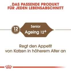 ROYAL CANIN Senior Ageing 12+ ist ideal für Katzen ab einem Alter von 12 Jahren geeignet. Die Katzennahrung ist speziell auf die besonderen Bedürfnisse bei der Ernährung älterer Katzen abgestimmt.