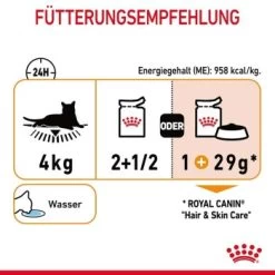 ROYAL CANIN® Hair & Skin Care feine Stückchen in Soße ist eine vollständige und ausgewogene Rezeptur, die speziell zur Unterstützung der Haut- und Fellgesundheit Ihrer Katze entwickelt wurde.