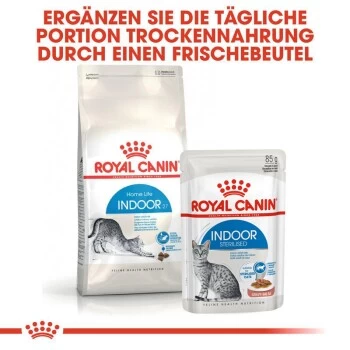 ROYAL CANIN Indoor 27 Katzenfutter ist speziell auf die Ernährungsbedürfnisse ausgewachsener Katzen abgestimmt, die nur im Haus leben. Bewegungsmangel kann zu einer verlangsamten Verdauung und geruchsintensivem Stuhl führen. ROYAL CANIN Indoor 27 enthält hochwertige L.I.P.-Proteine: ausgewählte, leicht verdauliche Eiweißquellen mit hoher biologischer Wertigkeit. Diese Proteine tragen auch dazu bei, das Stuhlvolumen und die Geruchsintensität zu reduzieren. Der moderate Fettgehalt in ROYAL CANIN Indoor 27 Trockenfutter sorgt dafür, dass die Kalorienzufuhr auf das Aktivitätsniveau der Wohnungskatze abgestimmt ist. Dies trägt zum Erhalt eines gesunden Gewichts bei. Wohnungskatzen verbringen häufig viel Zeit mit ihrer Fellpflege. Durch den Einsatz von speziellen Nahrungsfasern wie z.B. Psyllium, fördert diese Nahrung ein besseres Ausscheiden geschluckter Haare. Darüber hinaus fördert ROYAL CANIN Indoor 27 Futter auch die Erhaltung gesunder Harnwege bei ausgewachsenen Katzen.