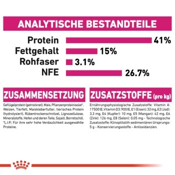 Einige wählerische Katzen bevorzugen Futter mit einem hohen Eiweißgehalt. ROYAL CANIN Protein Exigent bietet das ideale Gleichgewicht zwischen Eiweiß, Kohlenhydraten und Fett, um den Appetit von Katzen mit dieser besonderen Vorliebe anzuregen und zu befriedigen. L.I .P.*-Proteine sind wegen ihrer hohen Verdaulichkeit ebenfalls enthalten.