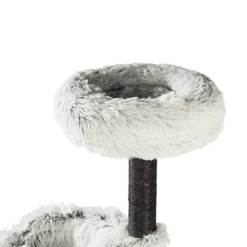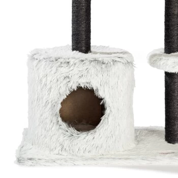 Der interessante Farbverlauf bei diesem langflorigem Plüsch ist ein echter Hingucker, was durch die, mit schwarzem Sisal, umwickelten Holme noch verstärkt wird. Aber nicht nur optisch sondern auch was die Bequemlichkeit betrifft, hat der Katzenbaum Lia einiges zu bieten. Eine kuschelige Höhle mit halbrunder Mulde auf dem Dach zum Schlafen und Verstecken, eine runde und eine extra große Liegeplatte auf der sich herrlich Fellpflege betreiben lässt, eine Hängemulde zum Beobachten und das Highlight eine runde Liegemulde mit gepolstertem Rand zum Hineinkuscheln. Für Action sorgen die stabilen Holme an denen es sich Klettern und die Krallen pflegen lässt. Die Lieferung erfolgt zerlegt inkl. Aufbauanleitung.
