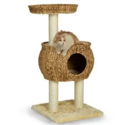 Katzen wünschen sich stets einen Platz, von dem aus sie das Geschehen beobachten können – und sie brauchen Rückzugsmöglichkeiten. Beide Vorteile bietet der Kratzbaum Cestino von Silvio Design. Der höchste Punkt des Spielturms ist ein bequemer Liegeplatz mit Rand für noch mehr Komfort und sicheres Liegen. Die Liegefläche ist wie die Höhle aus anschmiegsamer Wasserhyazinthe geflochten. Ein perfekter Ort zum Schlafen für Ihre Katze.