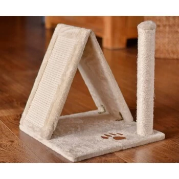 Dieser Kratzturm kommt, mit seinen zwei großen Sisalflächen (je ca. 34x13cm) auf dem Dach und dem sisalumwickelten Holm (ca. Höhe 39 cm), dem natürlichen Kratzverhalten Ihrer Katze sehr entgegen. Unter der Überdachung bietet die, mit kuscheligem Plüsch bezogene, Bodenplatte zudem ein bequemes Plätzchen zum Schlafen.