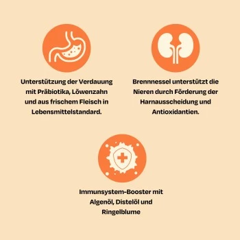 - 🥩 Extra hoher Fleischanteil nach dem beutenahen Prinzip. Ohne Getreide und Zuckerzusätze! Wir verwenden Zutaten in Lebensmittelstandard