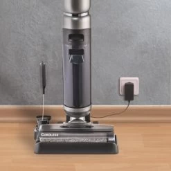 Der FloorCleaer ist schlank und benötigt wenig Stauraum. Die Lade- und Parkstation sind kombiniert, so dass das Gerät gleichzeitig aufgeladen, gereinigt und aufbewahrt werden kann. Das Zubehör kann platzsparend im Halter verstaut werden.