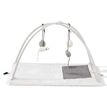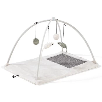 Die Kratzmatte von Trixie bietet eine Fläche aus Sisal zum Kratzen. Das herunter baumelnde Spielzeug über der Matte regt ihre Katze zum Spielen an. Sie kann platzsparend zusammen geklappt werden.