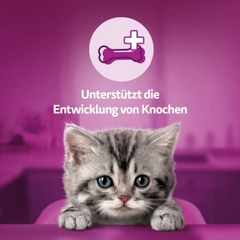 Die Minisnacks von Whiskas Milch-Kätzchen sind perfekt abgestimmt auf kleine Leckermäuler, reich an Milch und damit Kalzium, das zur Förderung eines gesunden Zahn- und Knochenwachstums beiträgt.